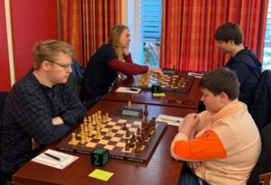 Dieser Erfolg von Edward ist natürlich überragend, aber die Erfolge unserer drei weiteren Teilnehmer verdienen ebenfalls Anerkennung! In der stark besetzten A-Gruppe erzielten Florian Salim, einer der jüngsten Teilnehmer und mit Elo 1756 an Position 87 gesetzt, 4 Punkte aus den 7 Partien und Maximilian Jürgenpott, mit einer Elo von 1799 an Position 78 gesetzt, 3,5 Punkte aus 7 Partien; letzterer blieb ungeschlagen und war damit unangefochtener Remiskönig. Beide dürfen sich über beträchtliche DWZ- und Elozuwächse freuen und Florian dazu über einen Geldpreis als Zweiter in der U19 Sonderwertung.