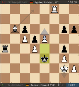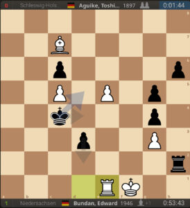 In der 6. Runde spielte Edward Weiß gegen Toshiya Aguike (1897 ELO). Erst vor zwei Wochen gab es dieses Duell auf der NDVM. Dort haben sich die beiden Talenten auf ein Remis verständigt.