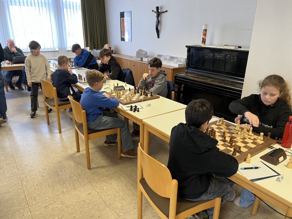 Die dritte Mannschaft startete mit einem 2:2-Unentschieden gegen Kaponier Vechta 2 in den Tag. David Kaznacheyev gewann seine Partie, während Lukas Kramer und Elizabeth Bundan jeweils ein Remis beisteuerten. Gegen die erste Mannschaft aus Vechta musste man sich zwar mit 0:4 geschlagen geben, sammelte jedoch wertvolle Erfahrung für die Zukunft. Und übrigens, die Partien der zweiten und dritten Mannschaft wurden live über Lichess übertragen, sodass die Eltern die Kinder verfolgen konnten.